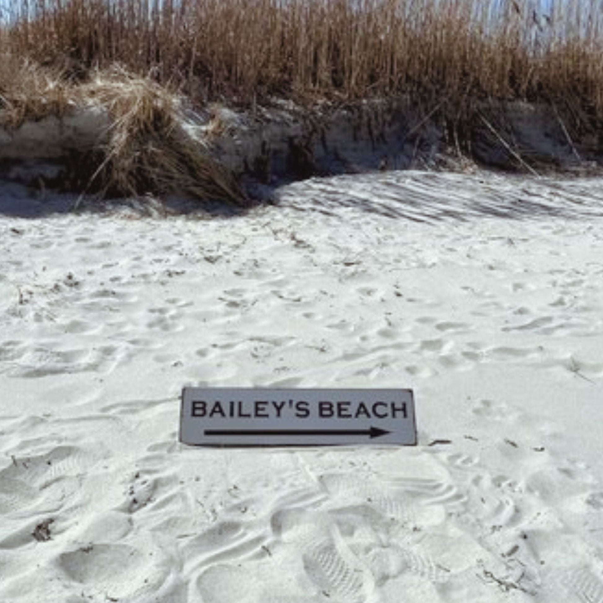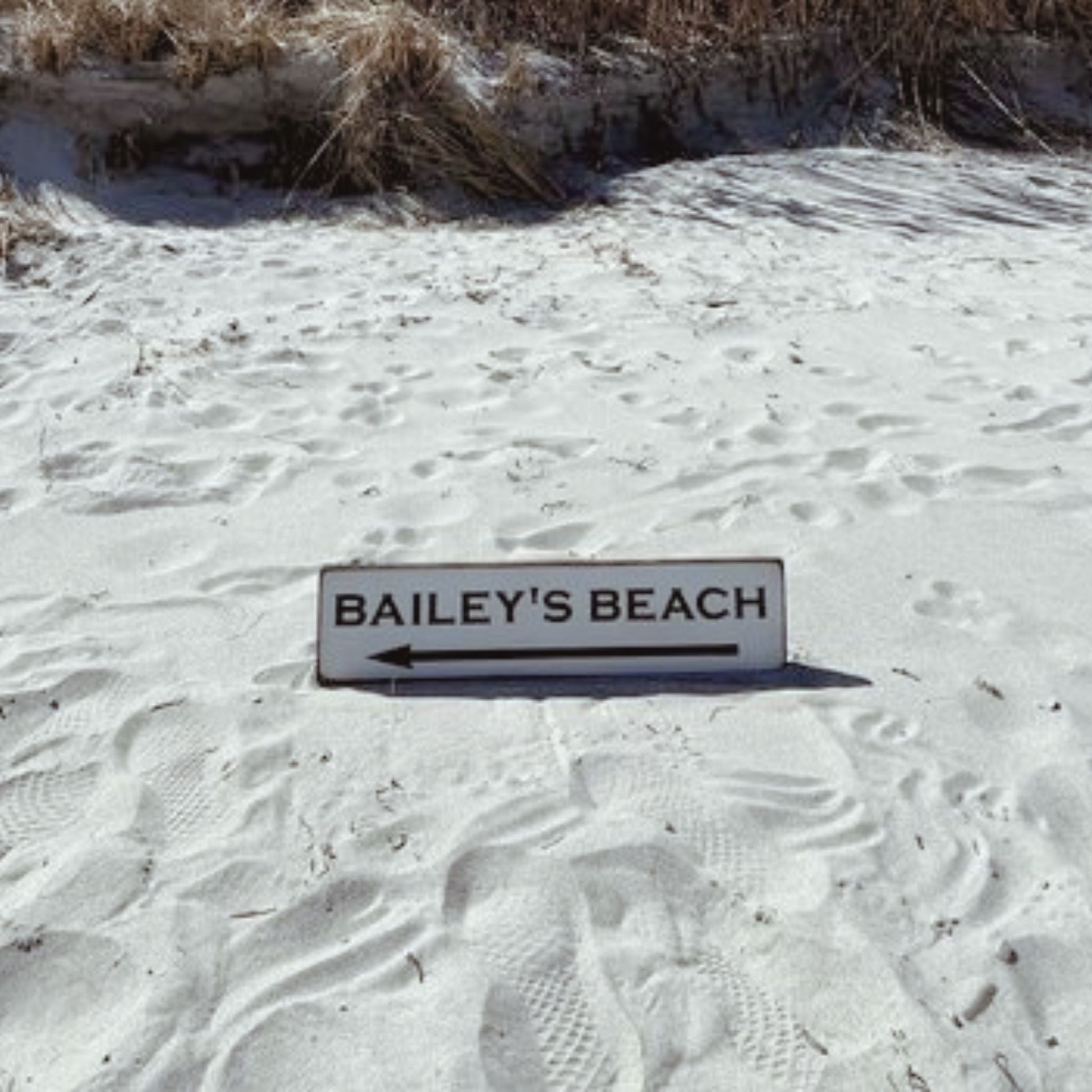 Introducing our beautifully crafted handmade “Bailey’s Beach” sign, the perfect way to pay homage to the iconic Newport beach. With its charming and simple design, the font is painted in classic black on a crisp white background with an arrow pointing either left or right.