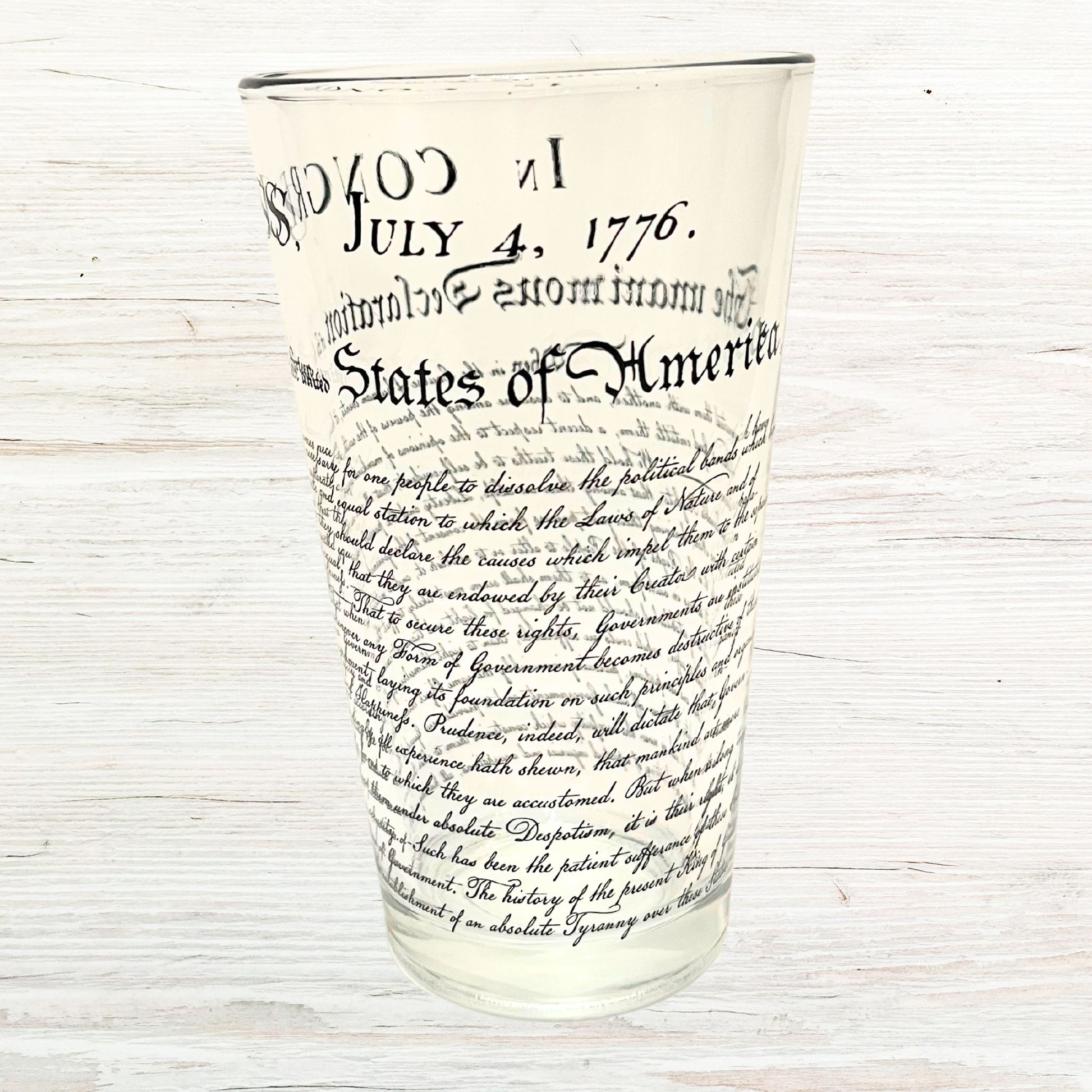 Our 'Declaration of Independence" beer glass is the perfect blend of history and style. This glassware masterpiece showcases these timeless words, mixing patriotic sentiment with elegant design.
