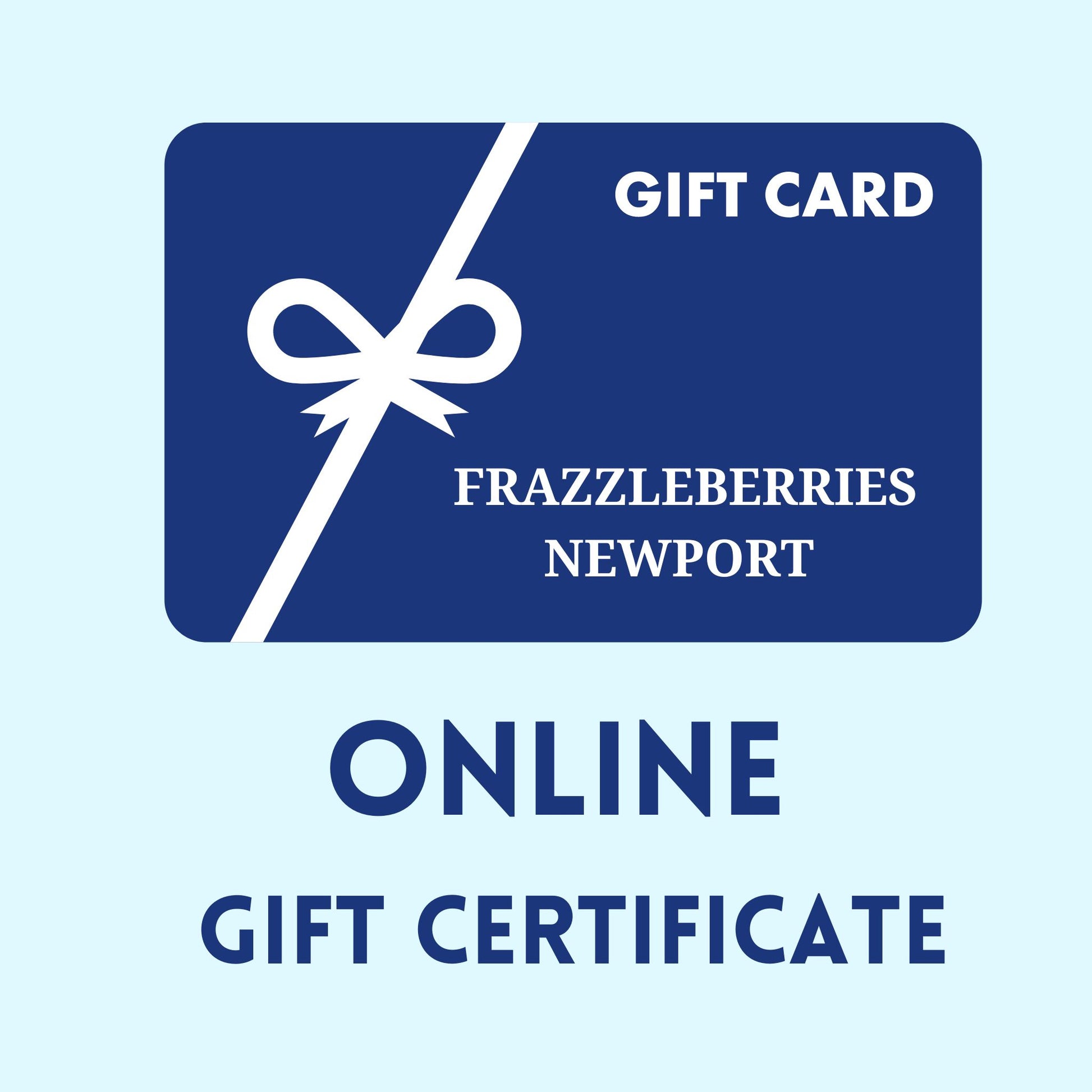 Give the gift of Frazzleberries Newport with our ONLINE ONLY gift card. Simply choose how much you would like to load onto your digital gift card, and you can email the recipient a unique code they can use at checkout.