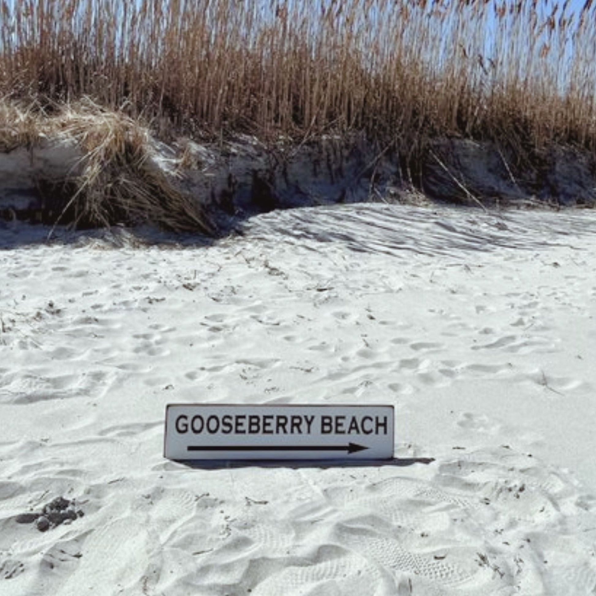 Introducing our beautifully crafted handmade “Gooseberry Beach” sign, the perfect way to pay homage to the iconic Newport beach. With its charming and simple design, the font is painted in classic black on a crisp white background with an arrow pointing either left or right.
