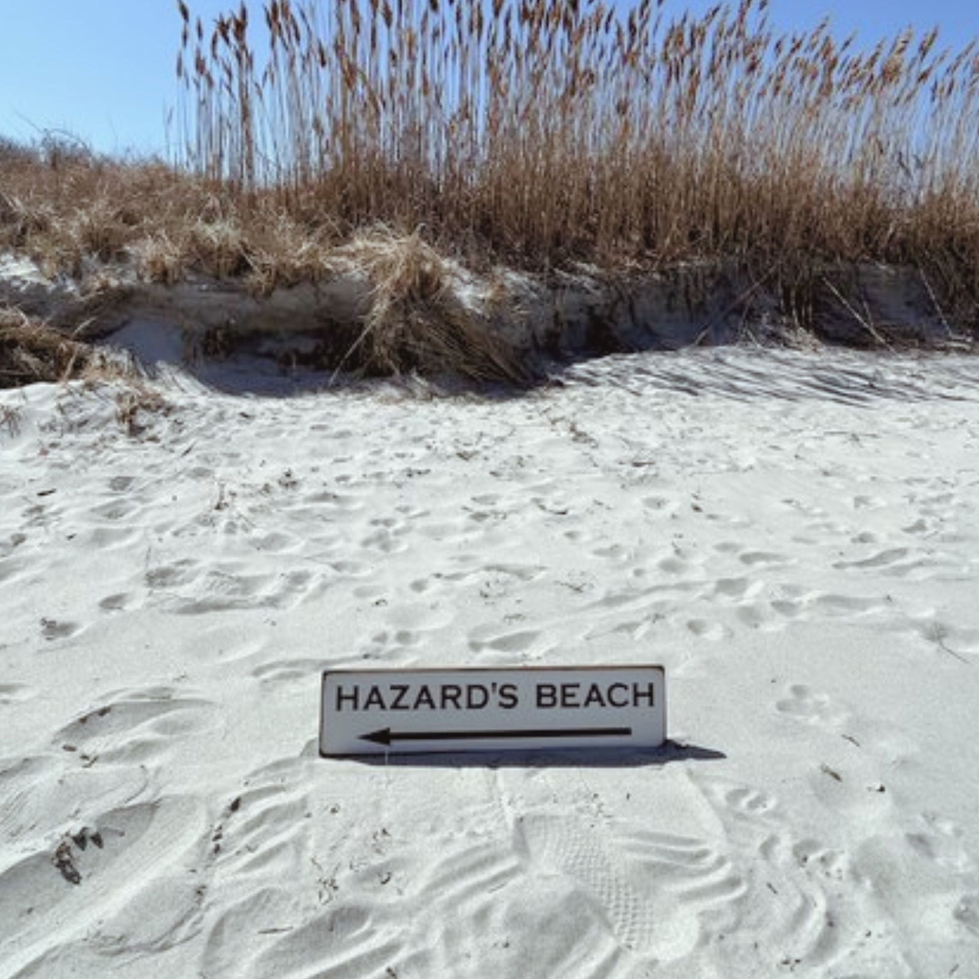 Introducing our beautifully crafted handmade “Hazard’s Beach” sign, the perfect way to pay homage to the iconic Newport beach. With its charming and simple design, the font is painted in classic black on a crisp white background with an arrow pointing either left or right.