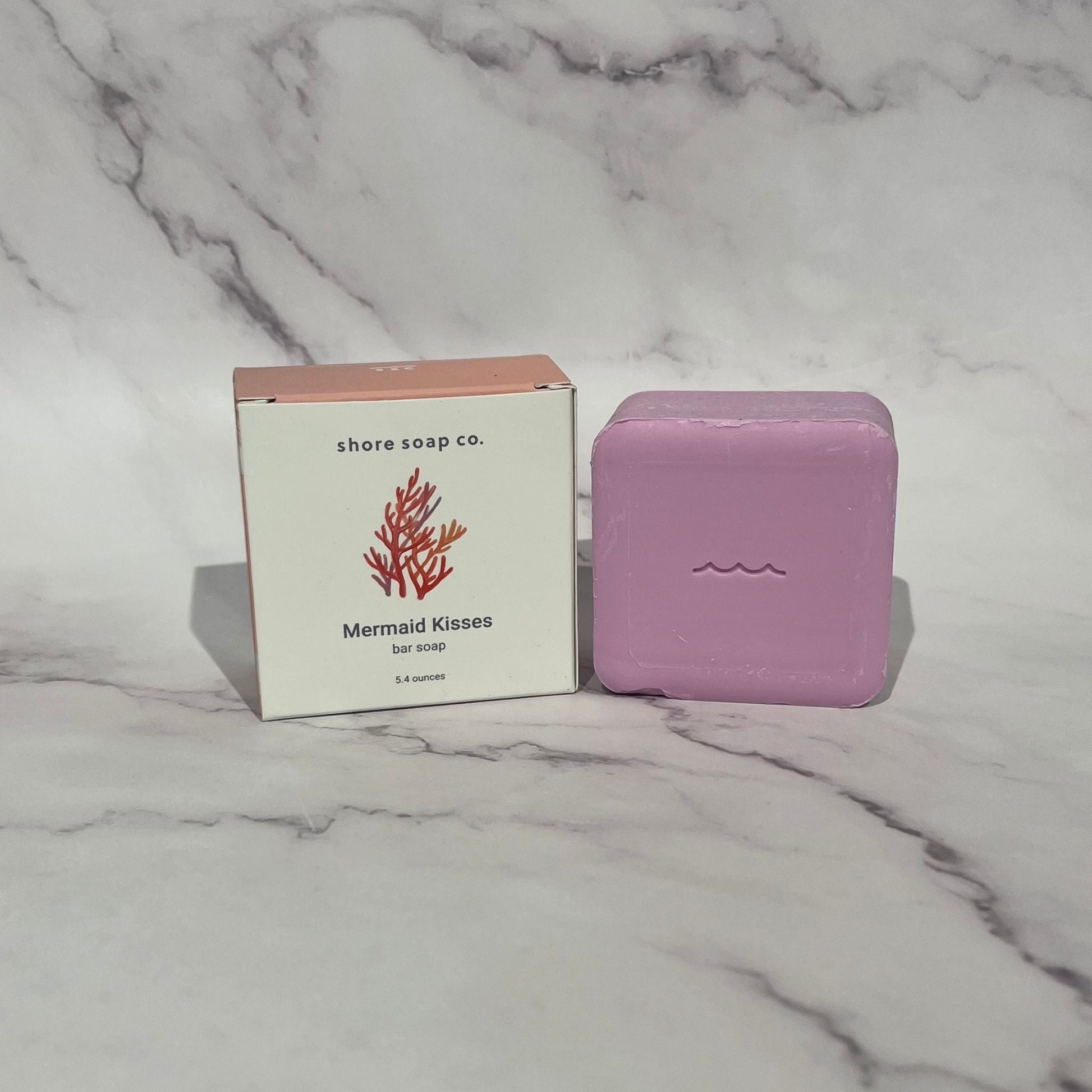 Bring the ocean home with Shore Soap’s Mermaid Kisses bar soap. Inspired by the refreshing scent of the sea and the sweetness of a mermaid’s kiss, this soap will transport your mind from the shower to the beach.