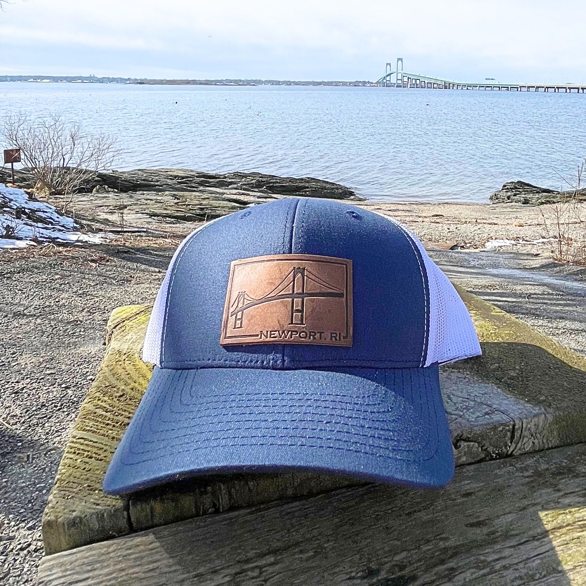 This Frazzleberries exclusive Newport Bridge hat is a stylish accessory that pays homage to the iconic Pell bridge and the iconic coastal town of Newport. Designed with a blend of classic charm and contemporary flair, this hat is the perfect way to show your love for the City-by-the-Sea. The silhouette of the bridge is burned into premium leather to create a unique look that is sure to be a staple accessory for years to come.