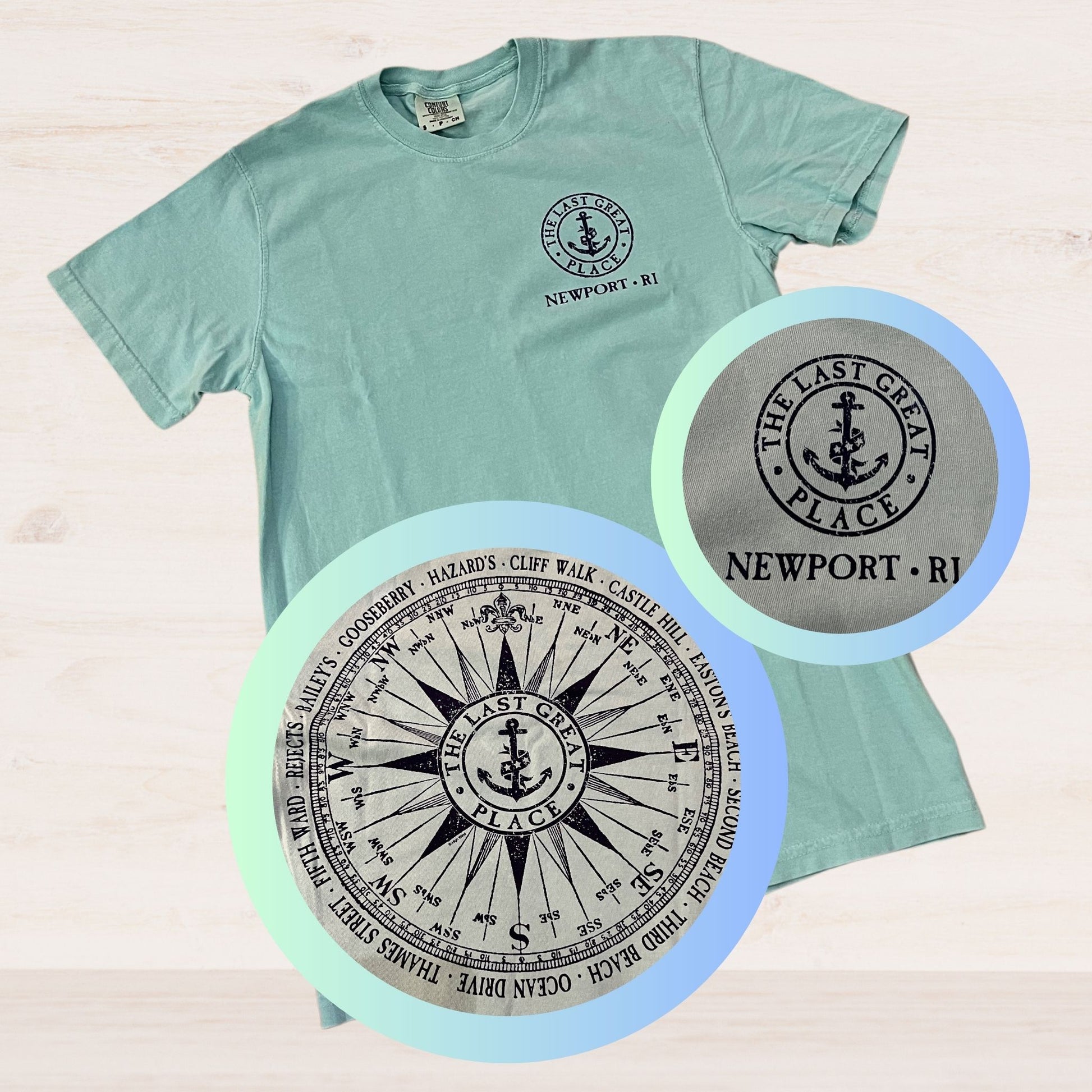 Our stylish and comfortable t-shirt, featuring a stunning compass rose design and the words "The Last Great Place, Newport RI". This phrase hearkens back to the long history of Newport, RI from the Gilded Age to present day. It is known worldwide as a place of rich culture and stunning coastal scenery.
