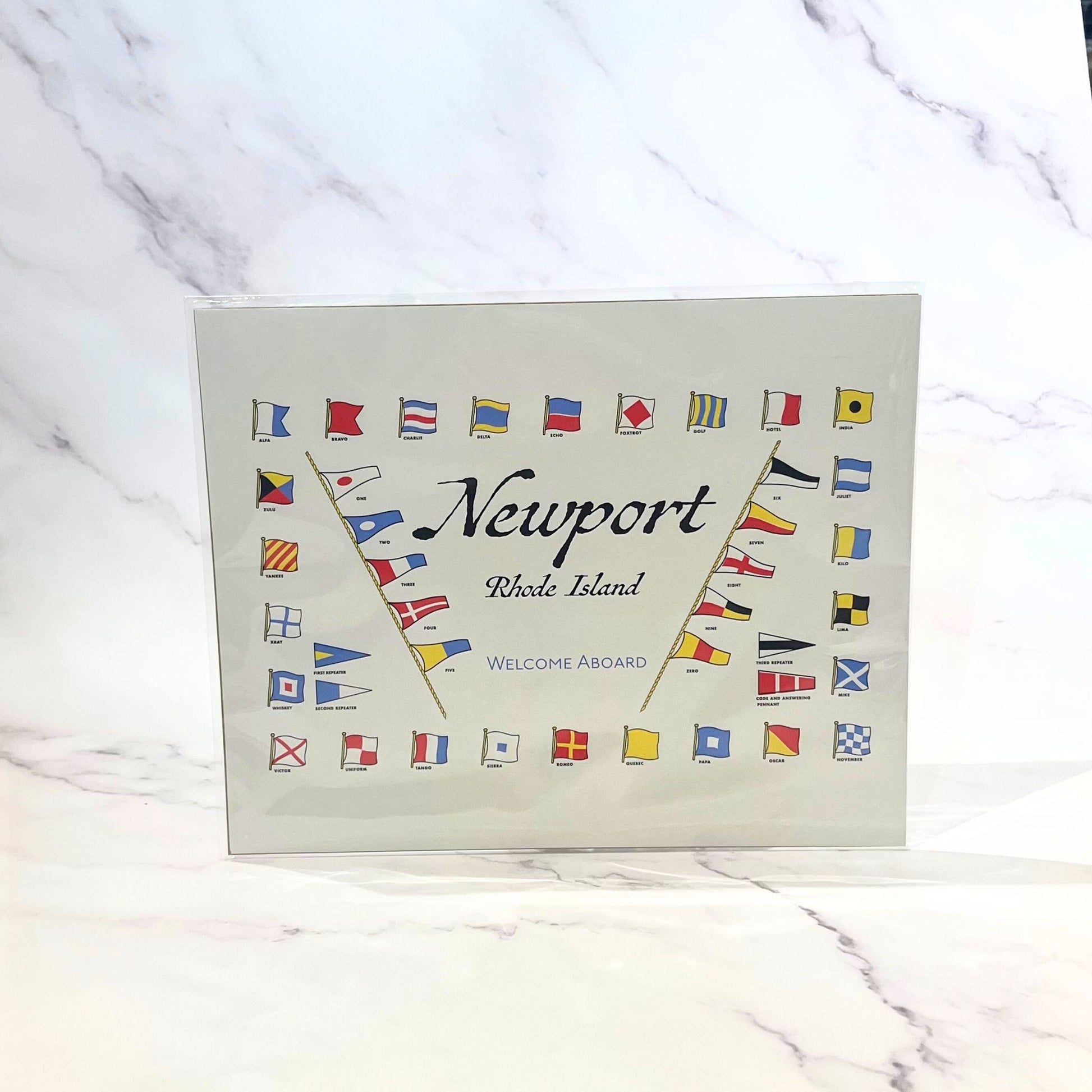 The print is available in an 8 x 10 size making it easy to find the perfect frame to suit your personal style and decor. Hang it in your living room, study, or maritime-themed nursery, and let the vibrant flags and captivating scenes transport you to the world of Newport's sailing heritage.