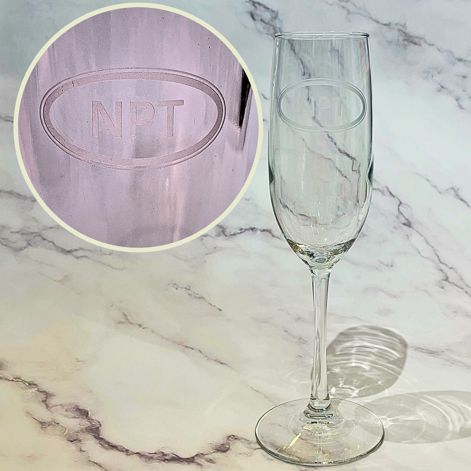 Our signature "NPT" Newport, Rhode Island flute glass is a stylish and elegant way to celebrate your love for this historic city. It is perfect for a special occasion such as a wedding, anniversary or engagement.
