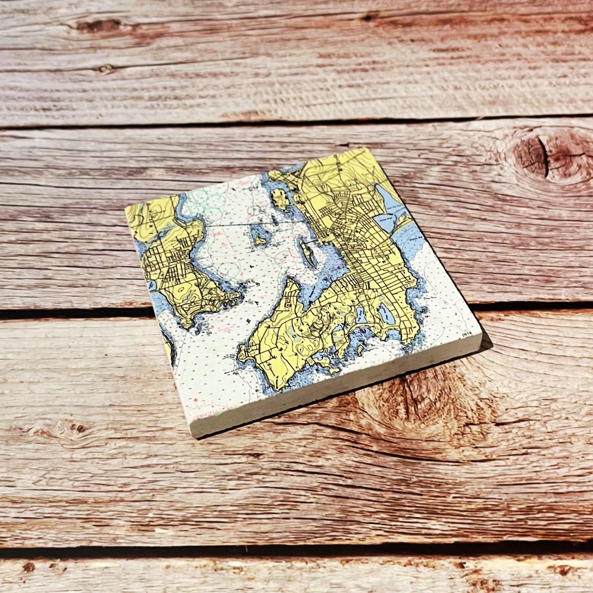 Newport, RI (Aquidneck Island) Marble Map Tile Coaster