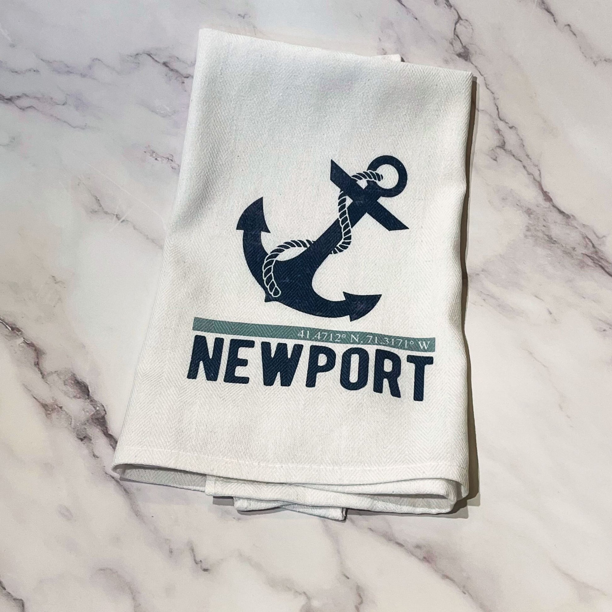 The anchor is a well-known emblem to remind you of the yachts and tall ships that dock in Newport Harbor. This tea towel adds a touch of nautical charm to any room. The towel showcases the coordinates of Newport, RI, which makes it an ideal souvenir or gift for anyone who loves this beautiful town. Whether you use it for cooking, baking, or simply as a decorative accent, this would make the perfect addition to your collection.