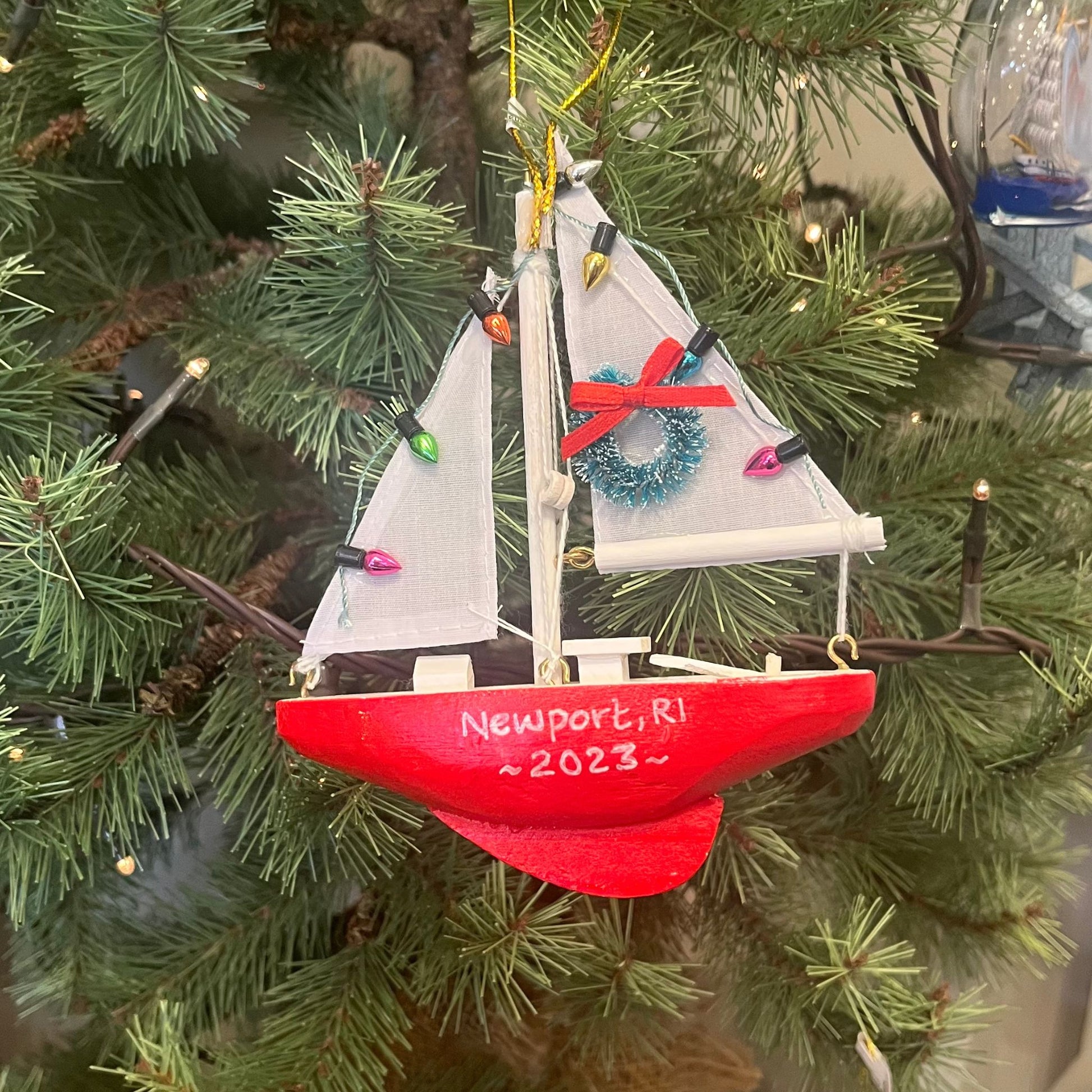 Best of all, this ornament is a wonderful way to celebrate your time in Newport, RI – a beloved coastal town known for its stunning sailboats and rich maritime history. With "Newport, RI" and "2023" handwritten on the front of the boat, this ornament is a charming memento of this beautiful destination.