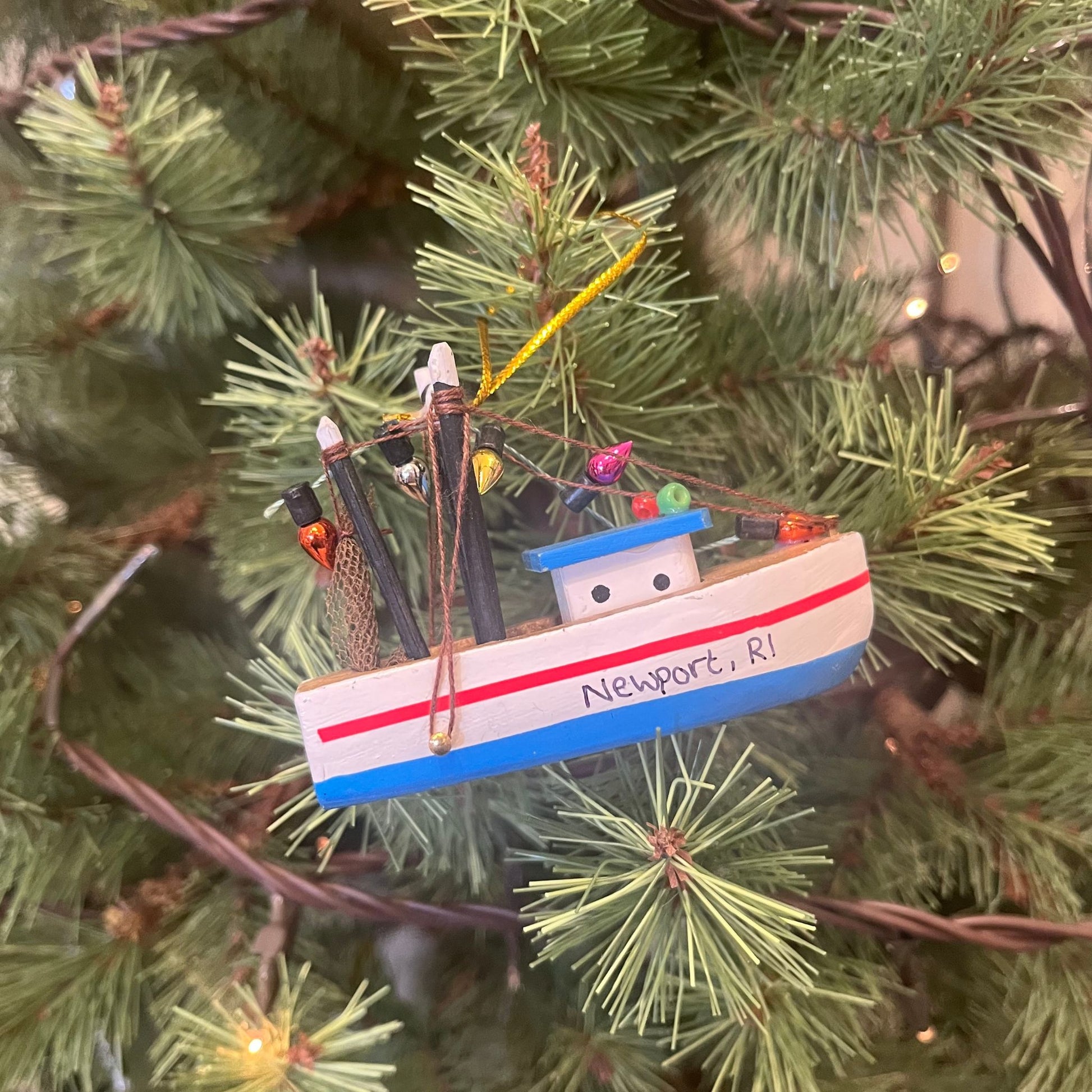 Whether you're an avid collector of Christmas ornaments or simply looking for a special memento of your time in Newport, RI, this fishing boat ornament is a must-have. So why wait? Add a touch of nautical charm to your holiday decorations with this delightful ornament today!