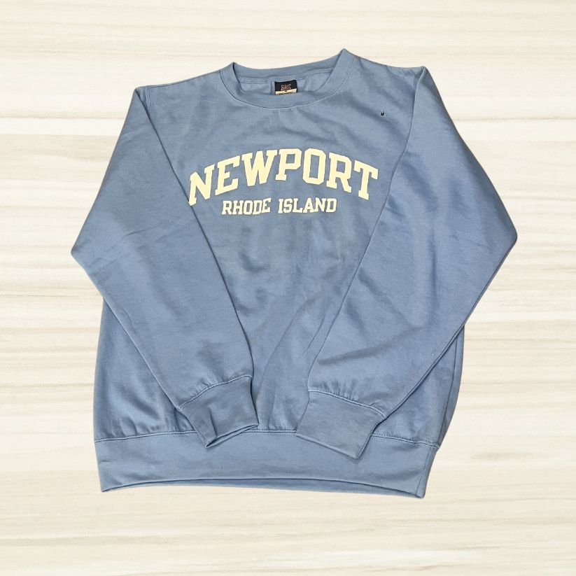 Whether you're strolling along the scenic Cliff Walk or enjoying a casual day in town, this sweatshirt keeps you cozy and stylish. The classic crewneck design ensures a timeless fit, while the bold "Newport, RI" lettering proudly showcases your love for this picturesque seaside town.