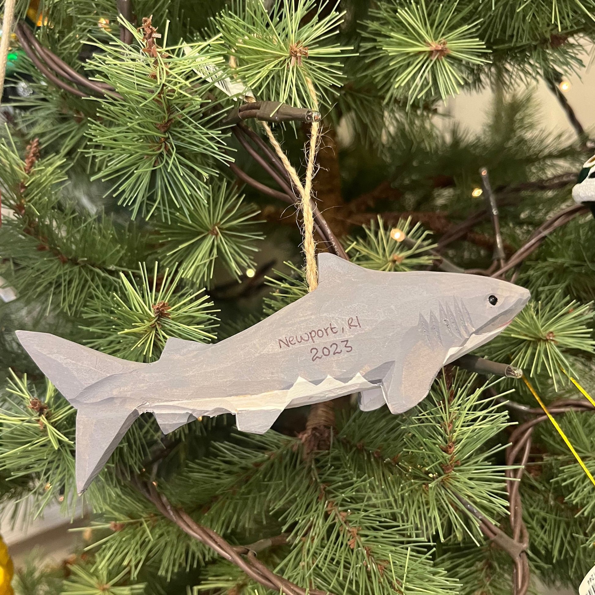 Newport, RI Great White Shark Carved Wooden Holiday Ornament