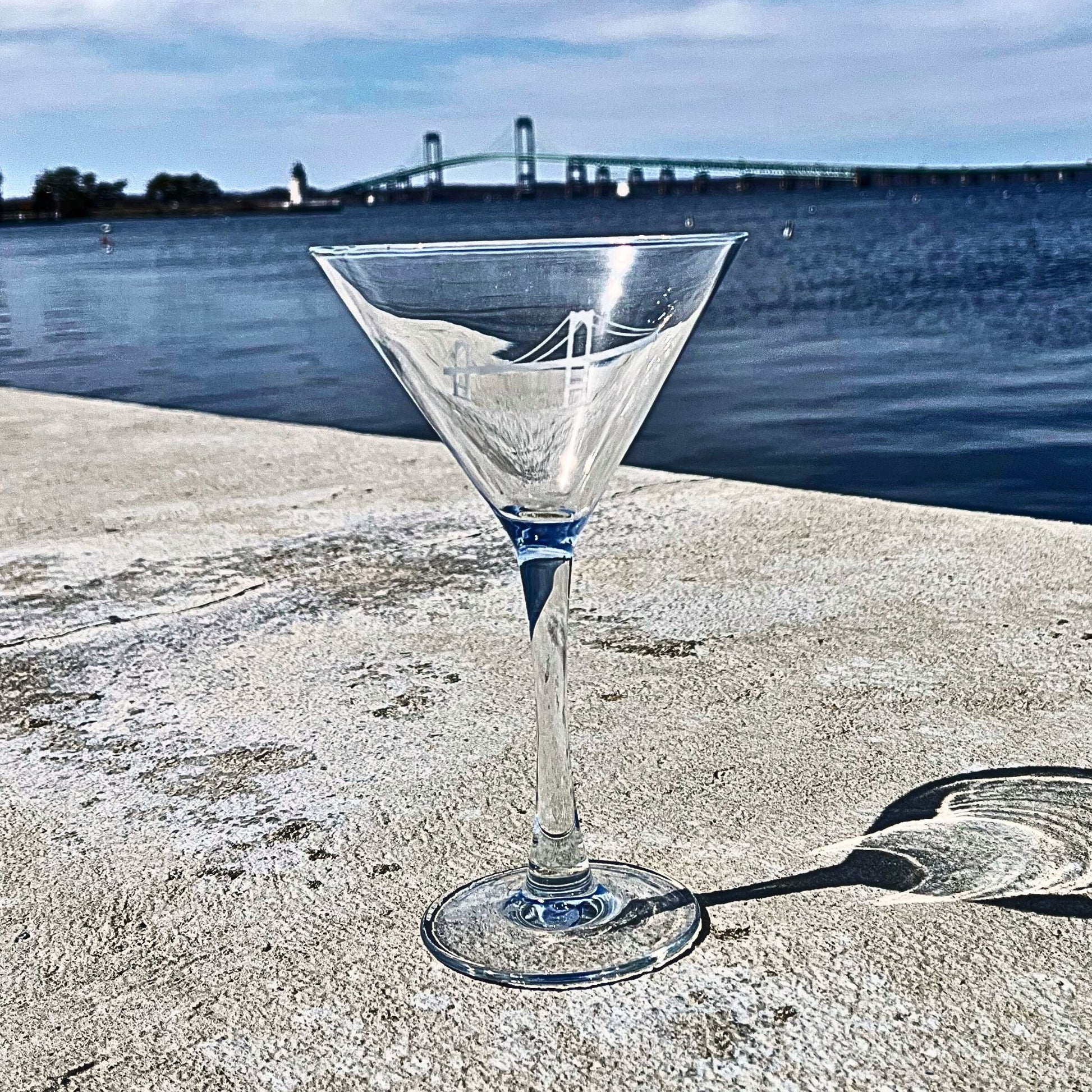 Our exquisitely crafted martini features an etched impression of the Newport, RI Pell Bridge. This glass is the perfect addition to any mixed drink lover's collection and it will remind you of relaxing days spent on Aquidneck Island. The design is a tribute to the beauty of Rhode Island and the iconic landmark bridge that connects Newport to Jamestown. This glass is the perfect way to show your love for the area and share it with others.