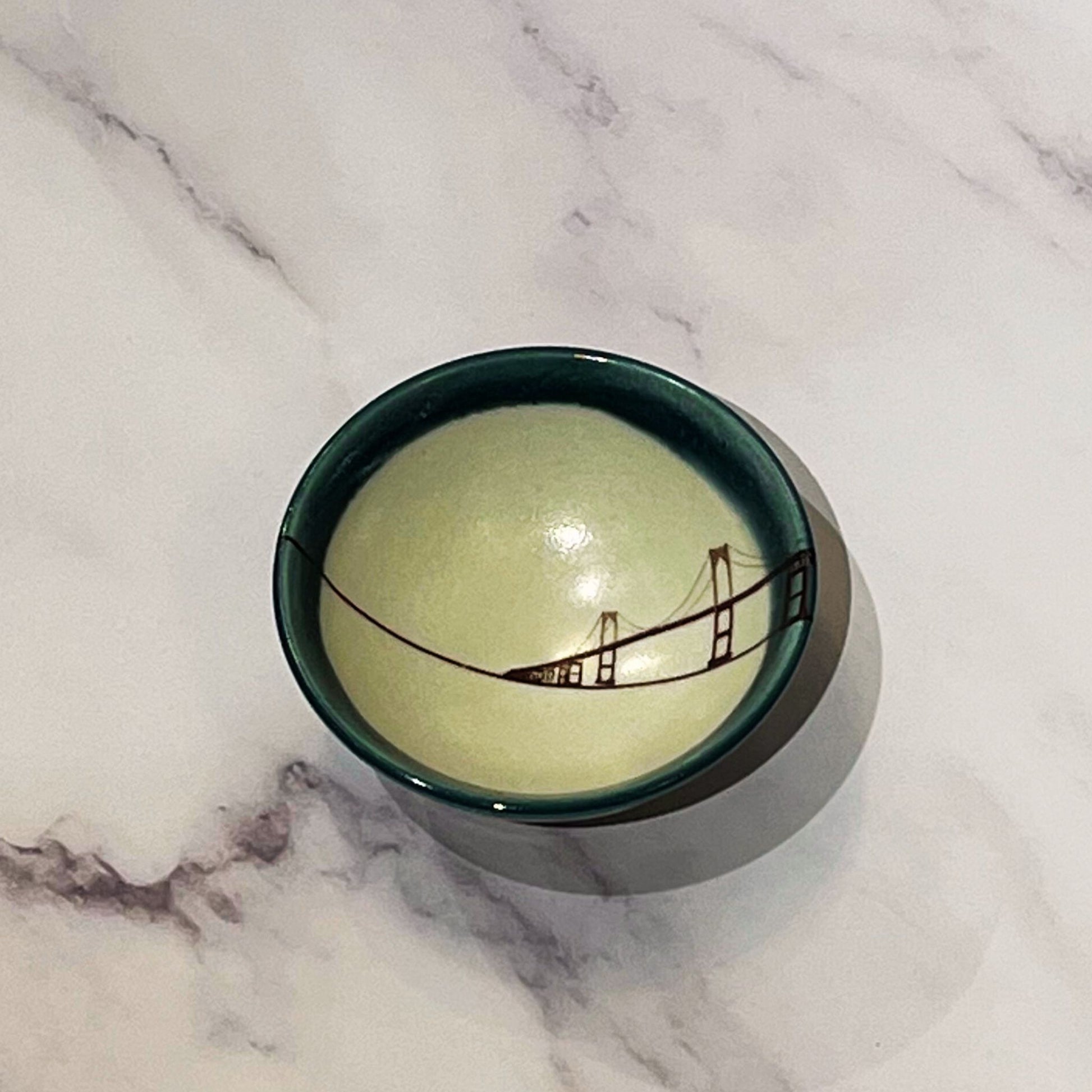 This beautiful and unique tiny bowl is handcrafted by Rhode Island ceramic artist Michelle Phaneuf. It features a delicate depiction of the iconic Newport RI Pell Bridge, making it a perfect way to commemorate your love for the beautiful city of Newport and a fantastic gift for someone that loves the City-by-the-Sea.