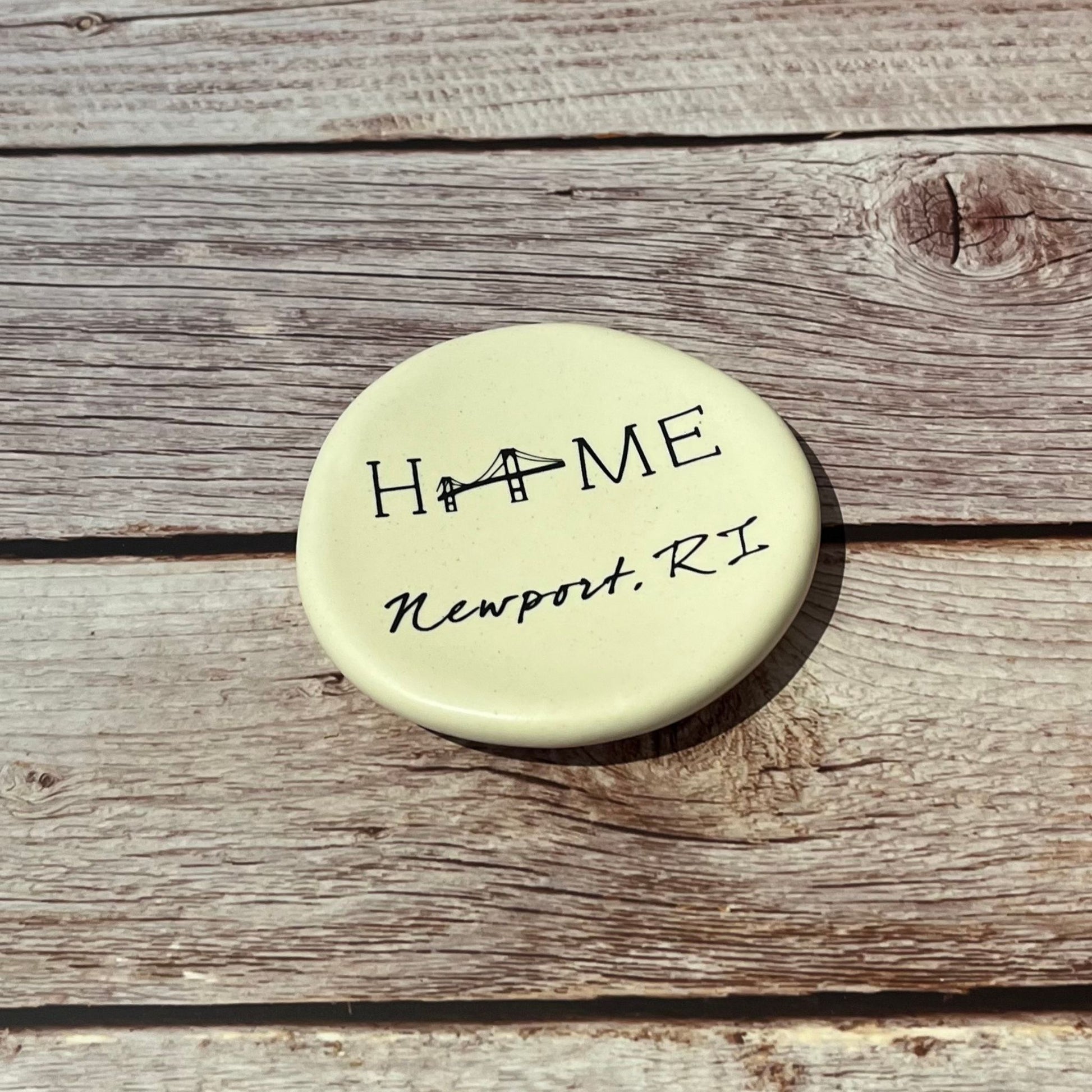 Our beautifully crafted ceramic ring dish features a stunning graphic of the iconic Newport RI Pell Bridge and the word "home" elegantly inscribed in bold letters. This charming dish is the perfect addition to your home decor, adding a touch of elegance and personality to your space.