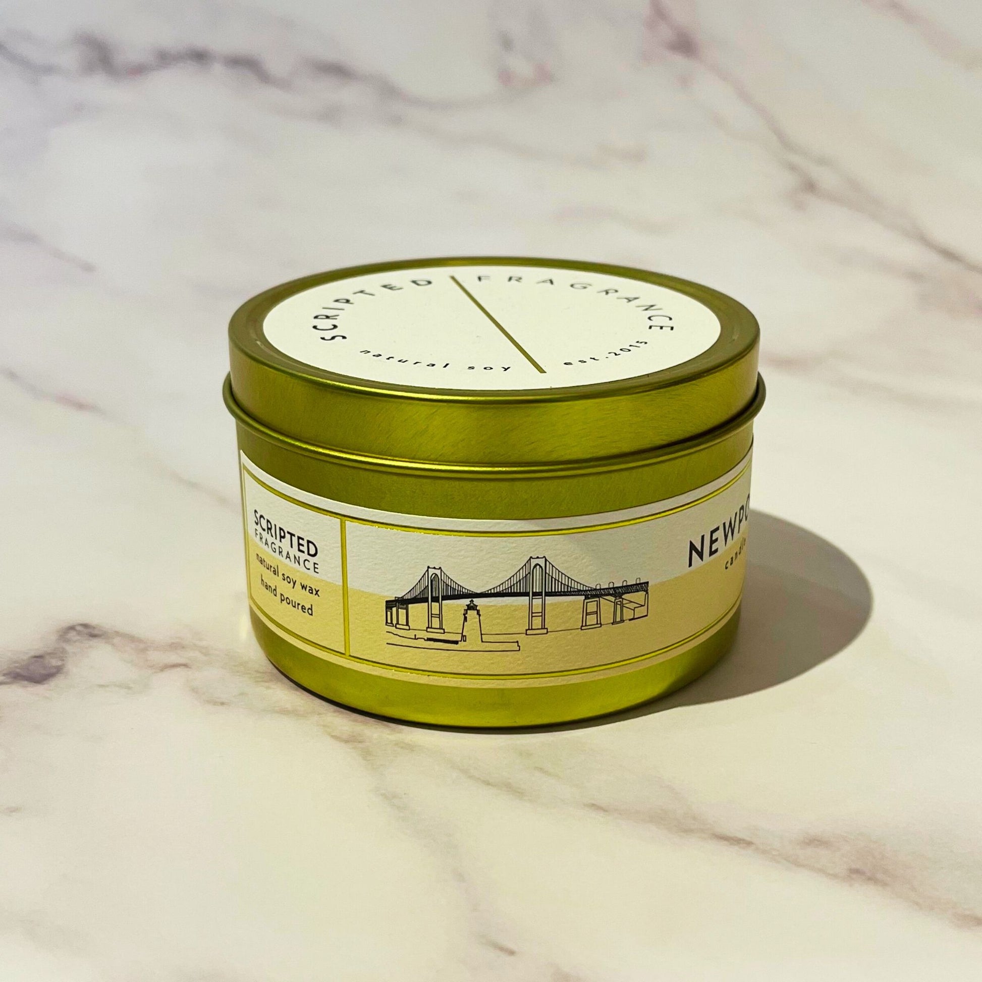 The Newport Bridge graphic printed on the tin is a tribute to the iconic bridge that spans the Narragansett Bay in Rhode Island. The bridge's intricate details are beautifully captured on the jar, making it a perfect gift for anyone who loves Newport or appreciates beautiful architecture.