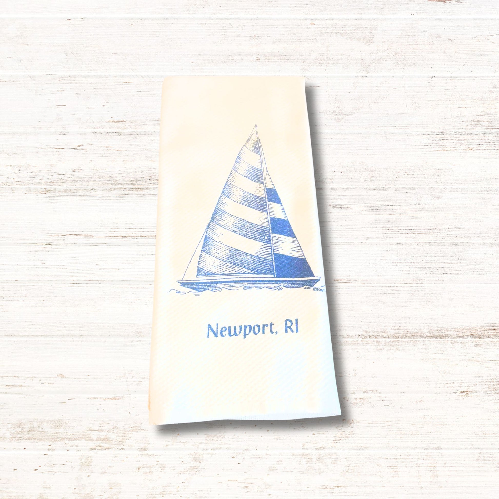 This colorful Newport, RI Sailboat Dish Towel is the perfect way to add a nautical touch to your kitchen! Crafted with thick, durable fabric, you'll love its quality and maritime design. Plus, its absorbency makes it a perfect drying companion. Enjoy the sea-inspired beauty of Newport!