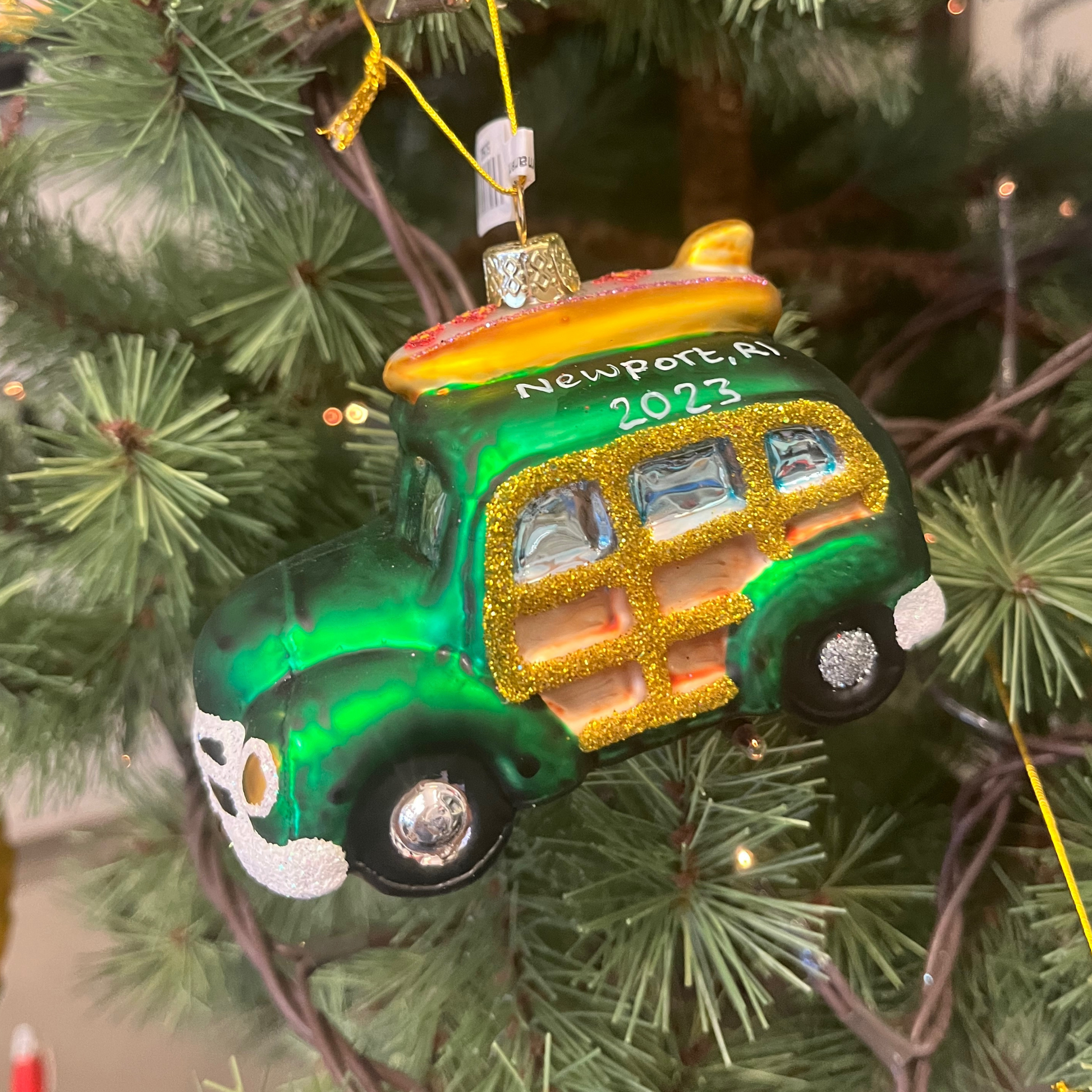 Newport, RI Surf Wagon Hand Blown Holiday Ornament