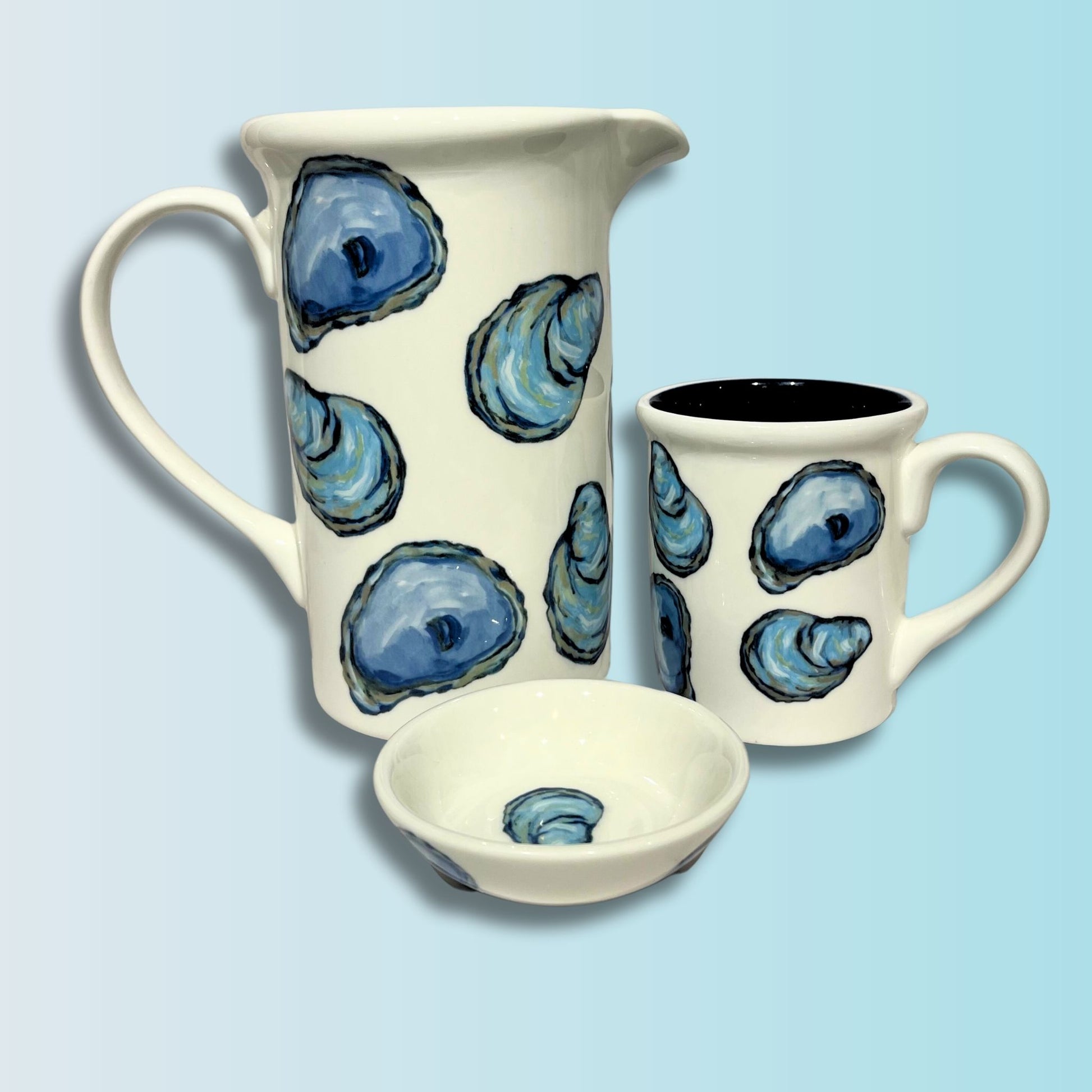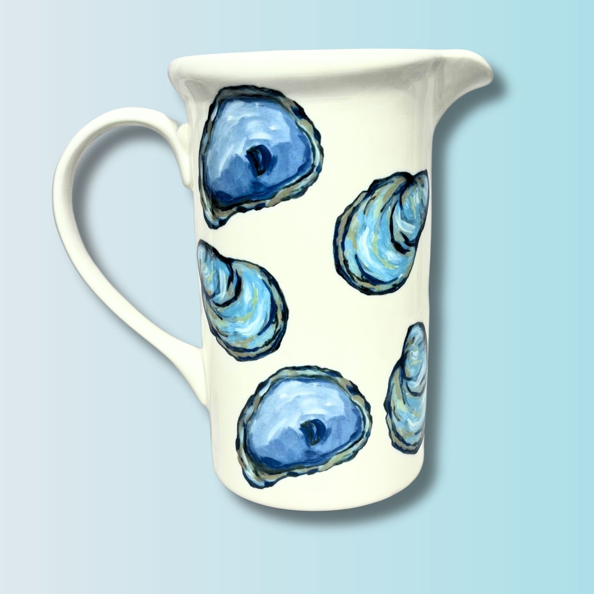 Elevate your table with our oyster print ceramic pitcher! Crafted with durable ceramic and glazed for a glossy finish, this pitcher looks luxurious and feels sturdy. It's an ideal piece for family meals and gatherings. Fill it with your favorite cold beverage for the summertime from fruit infused water to sangria. It acts as a pretty centerpiece for both casual and formal occasions. The ergonomic handle provides a comfortable grip, allowing you to effortlessly pour your favorite beverages without fear of spills. The generous capacity ensures ample servings.