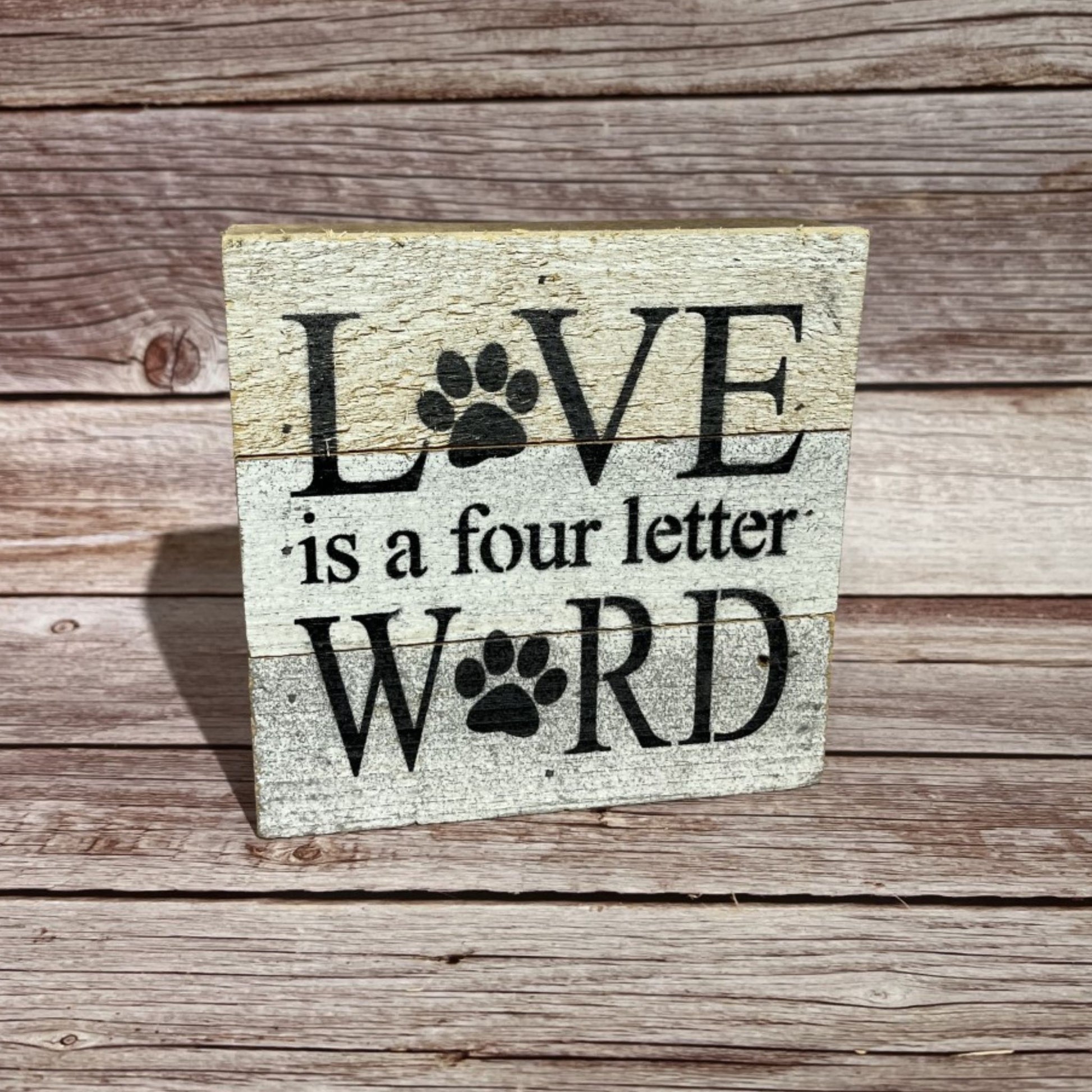 So why wait? Order your "Love is a Four Letter Word" wooden sign with paw prints today and celebrate the love you have for your furry friends!