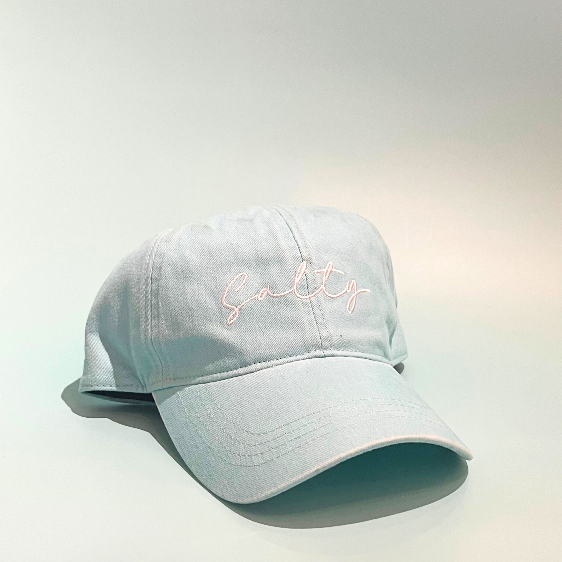 Our stylish and bold SALTY embroidered hats are perfect for making a statement! These caps are designed for those who wear their attitude with pride. Available in four eye-catching colors, each cap is a blend of fashion and function, offering both comfort and a trendy look. Choose from light blue, hot pink, white and denim blue.