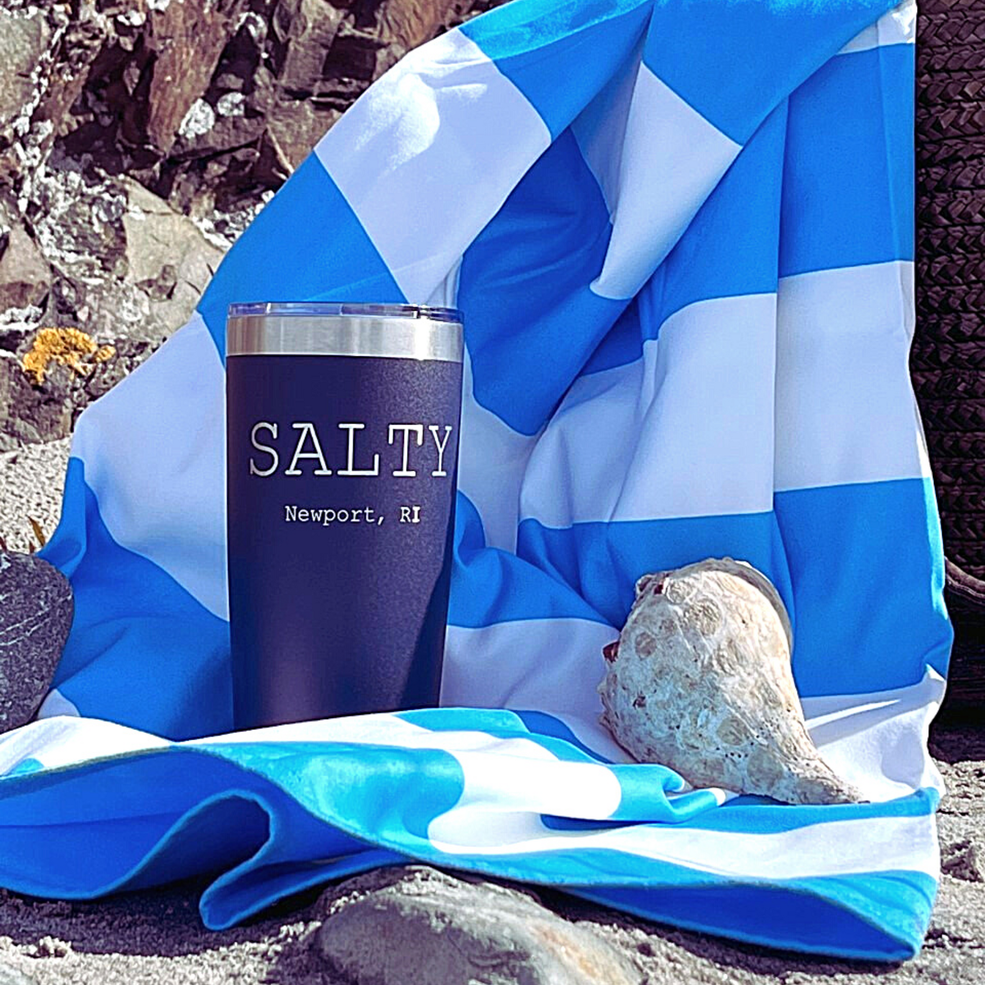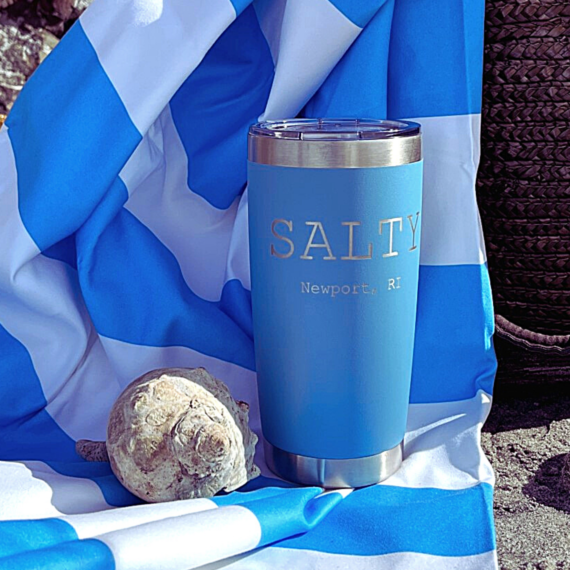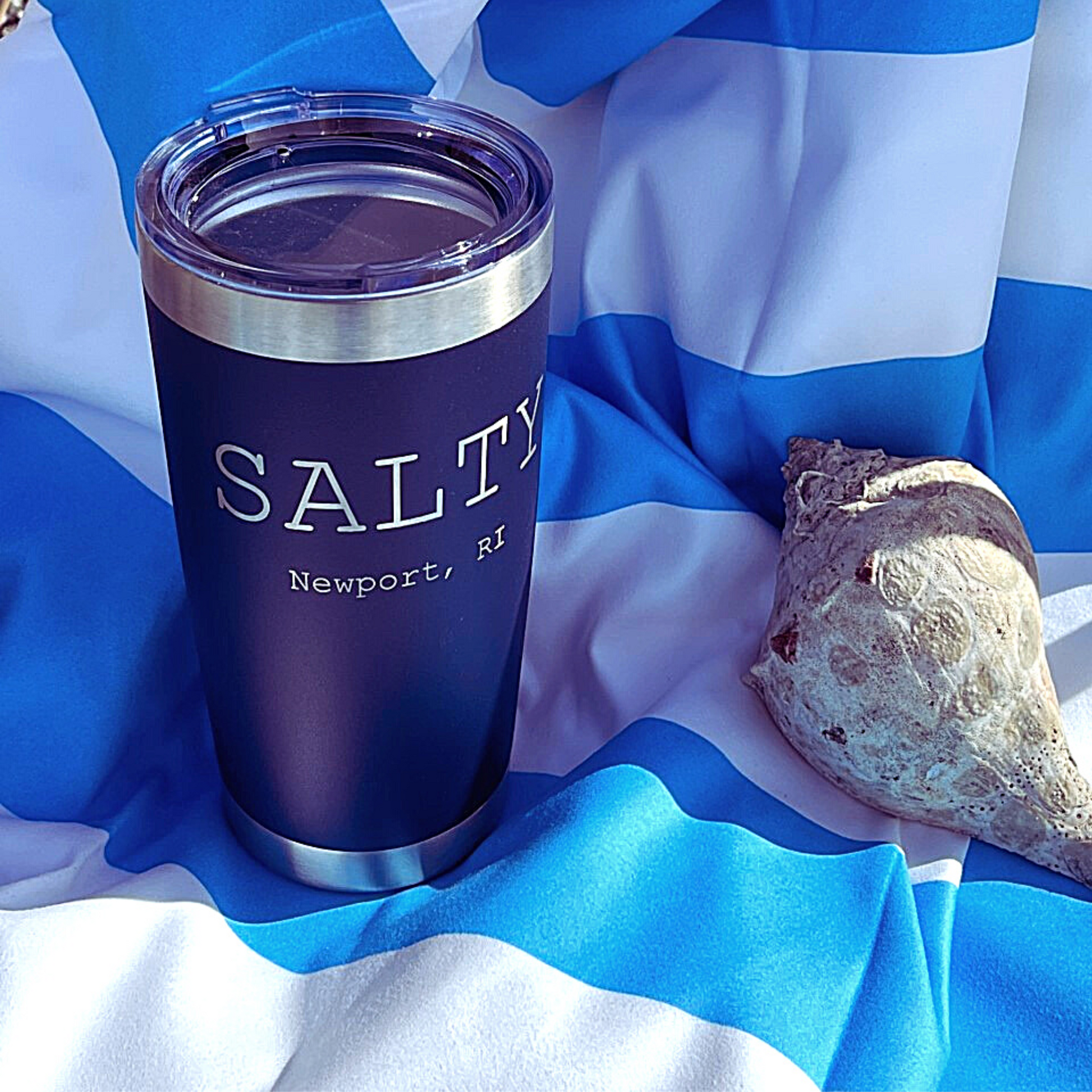 Our "SALTY" insulated drinks tumbler is a playful and stylish way to keep your drinks hot or cold on the go whether you're headed to the beach or the office. "Newport, RI" is etched onto the tumbler to keep the City-by-the-Sea on your mind even after you've gone home.